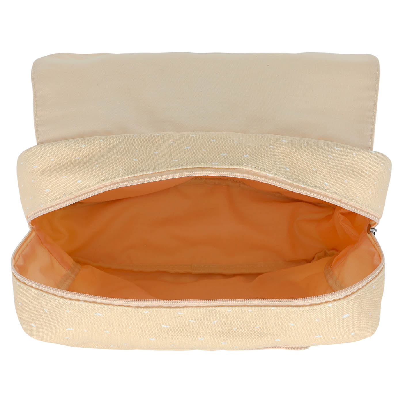 Met dit leuke boekentasje is je kindje helemaal klaar voor de eerste schooldag! De boekentas heeft verstelbare en gewatteerde schouderriemen en aan de bovenkant een handvat om gemakkelijk te kunnen ophangen. De gesp op de borst zorgt ervoor dat de schouderriemen niet van de schouders glijden. Er is ook een klein zakje aan de voorkant voorzien en de ritsen van het grote compartiment en het voorste zakje zijn voorzien van een groter trekkertje zodat de kindjes ze zelf eenvoudig kunnen openen en sluiten. Om te vermijden dat je kindje z'n boekentasje kwijtspeelt, hebben we langs de binnenkant een naam label voorzien.