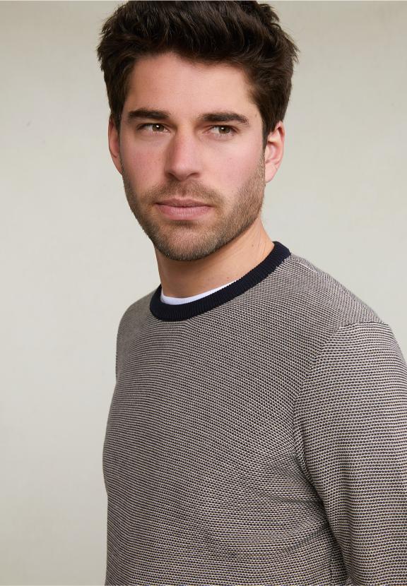 Slim Fit Dotted Pima Cotton Crew Neck Sweater Navy - Bleu