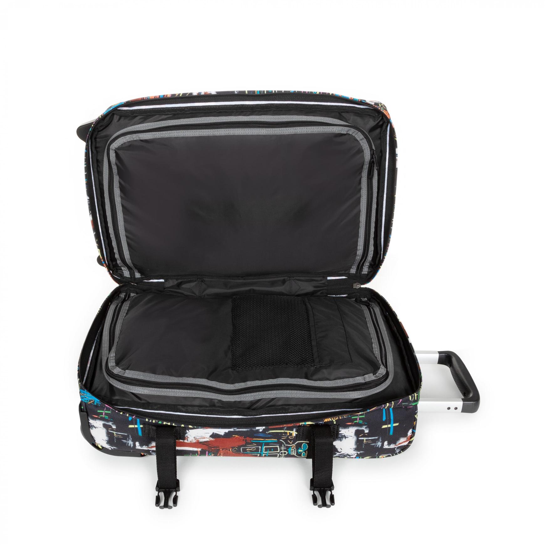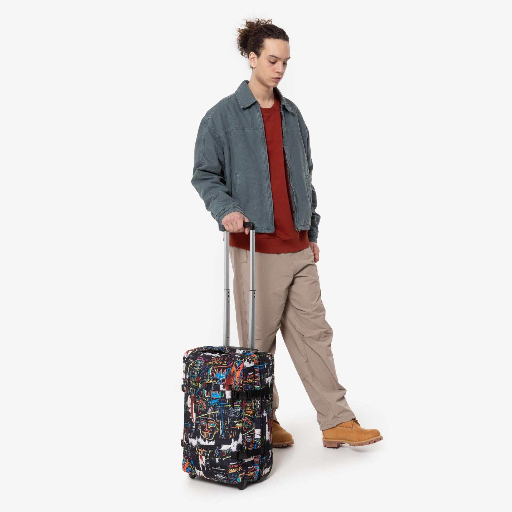 • Notre collaboration officielle rend hommage aux œuvres de Jean-Michel Basquiat. Notre bagage à roulettes format cabine pour les courts séjours est conçu pour vous garantir une durabilité et une sécurité accrues avec un verrou TSA intégré, des tubes en aluminium et des patins de protection.