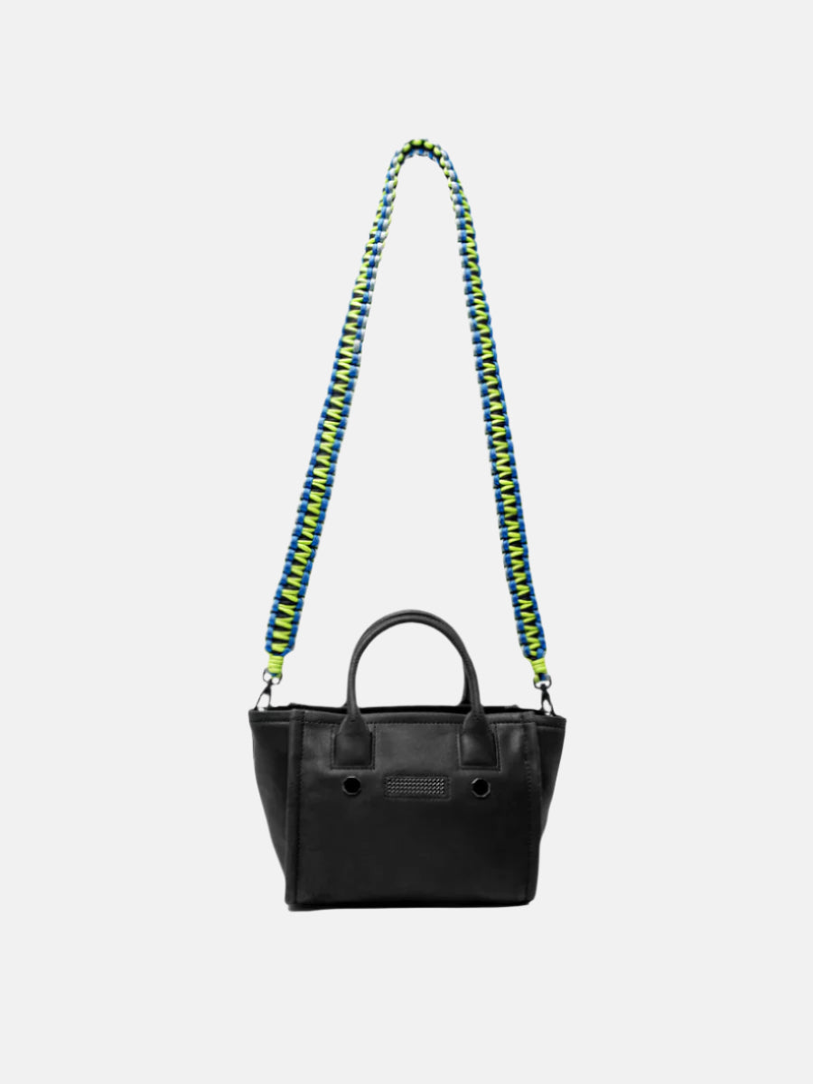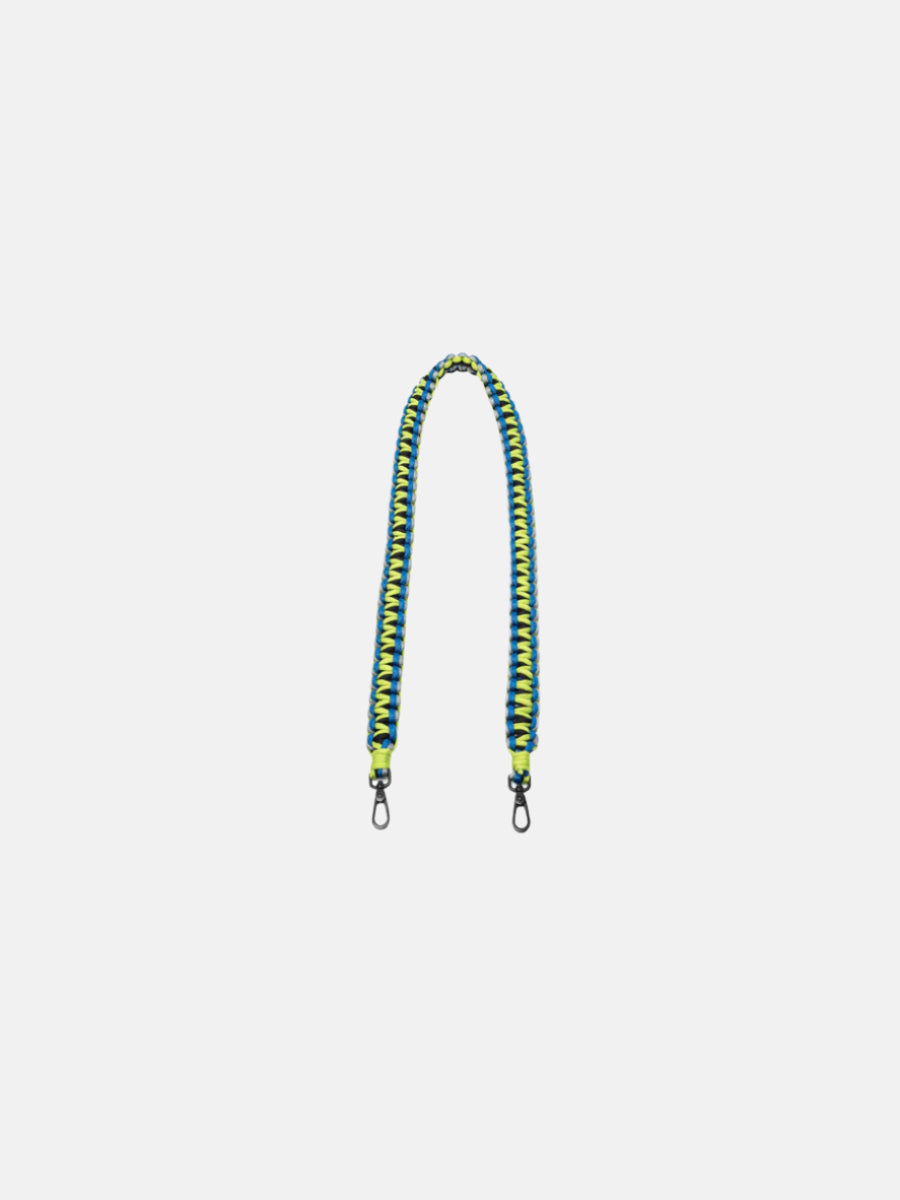 Langere nylon riem met kaleidoscoop patroon voor comfortabel schouder- of crossbody dragen. Voegt een vrolijke twist toe aan elke tas.