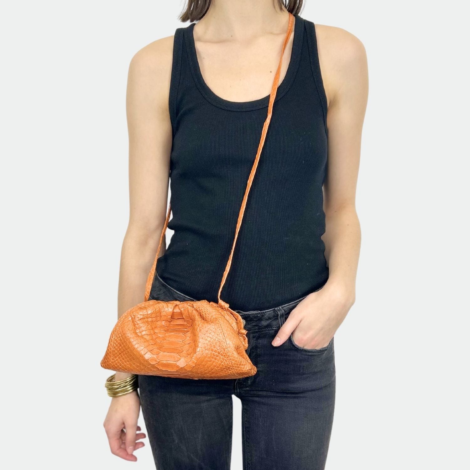 Zachte tas van python, met katoenen voeringen magnetische sluiting. Enig compartiment metklein zakje. Schouderriem van pythonAfmetingen van de tas: 23 x 18 cm