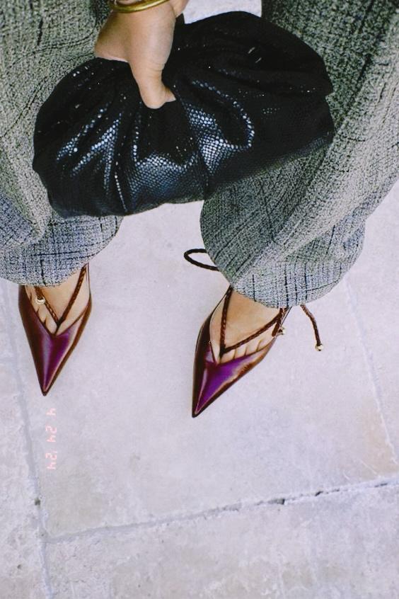 Zachte leren tas, met katoenen voering en magnetische sluiting. Enkele compartiment met klein zakje. Leren schouderriem. Afmetingen van de tas: 23 x 18 cm