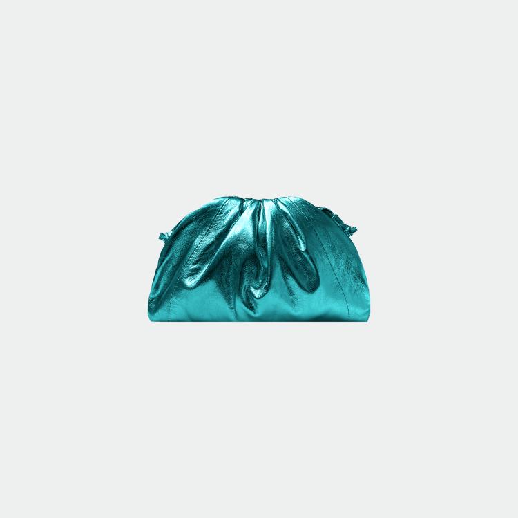 Zachte leren tas, met katoenen voering en magnetische sluiting. Enkele compartiment met klein zakje. Leren schouderriem. Afmetingen van de tas: 23 x 18 cm