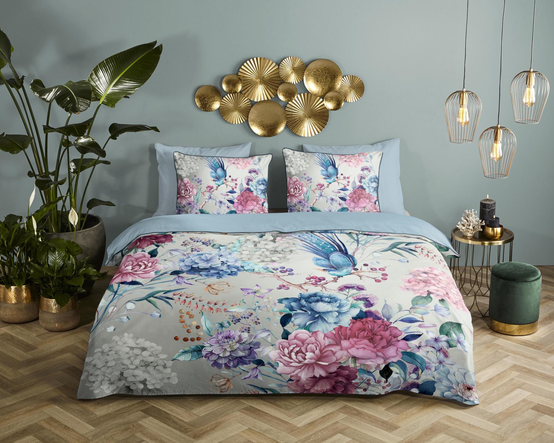 Satijnen dekbedovertrek Mondet van Descanso. Dit dekbedovertrek met bloemen, in de kleur grijs, is gemaakt van 100% katoen-satijn. Descanso dekbedovertrek is luxe, stijlvol en elegant. De achterkant heeft een bijpassende uni kleur. Het dekbedovertrek en de kussenslopen zijn afgewerkt met een luxe bies in een bijpassende kleur. Dat geeft een chique uitstraling aan je slaapkamer. Het dekbedovertrek van Descanso is gemaakt van 100% organisch katoen-satijn. Satijn is een speciale weeftechniek die zorgt voor een mooie glans en een zachte, soepele stof. Het is ademend, vocht- en warmteregulerend, en dus heerlijk comfortabel. Oeko-Tex gecertificeerd: vrij van schadelijke stoffen. Wasbaar op max. 60°C en geschikt voor de wasdroger.