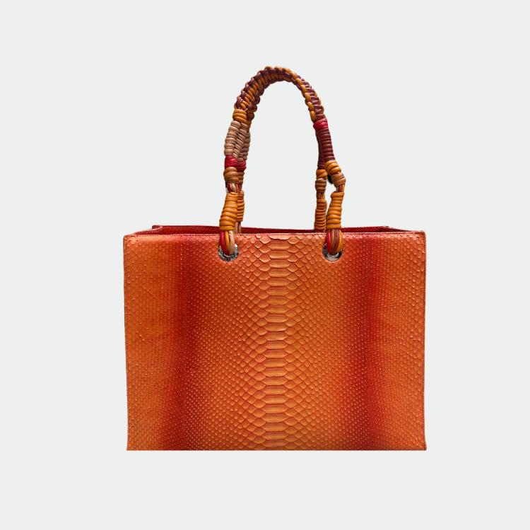 Python tas, met katoenen voering en gevlochten handvatten.