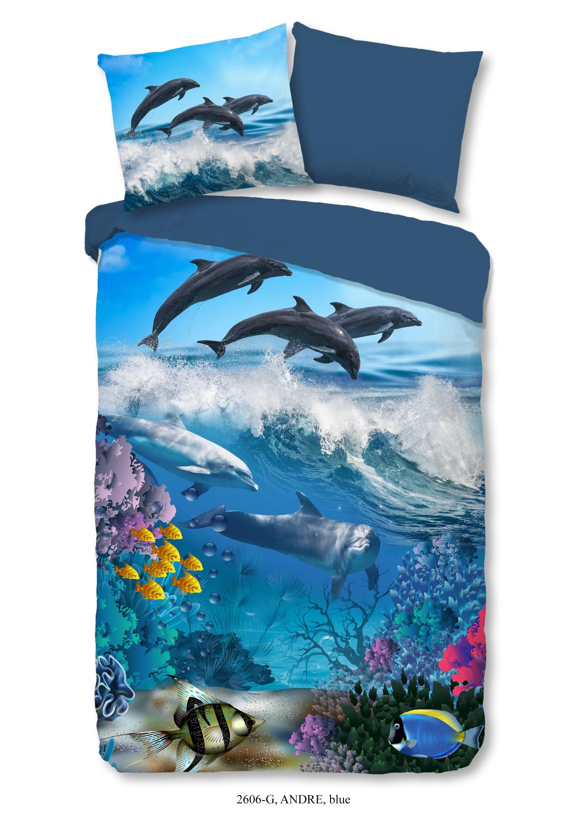 Kinderdekbedovertrek Andre van Good Morning in de kleur blauw, met een print van dolfijnen. Het dekbedovertrek is gemaakt van 100% katoen. Deze kwaliteit is ademend, vochtabsorberend en voelt zacht en soepel aan. Dit leuke kinderdekbedovertrek is een leuke toevoeging aan iedere kinderkamer. Het kinderdekbedovertrek is geschikt voor ieder jaargetijde. Het katoenen 100% katoen is heerlijk koel in de zomer en geeft warmte in de winter.