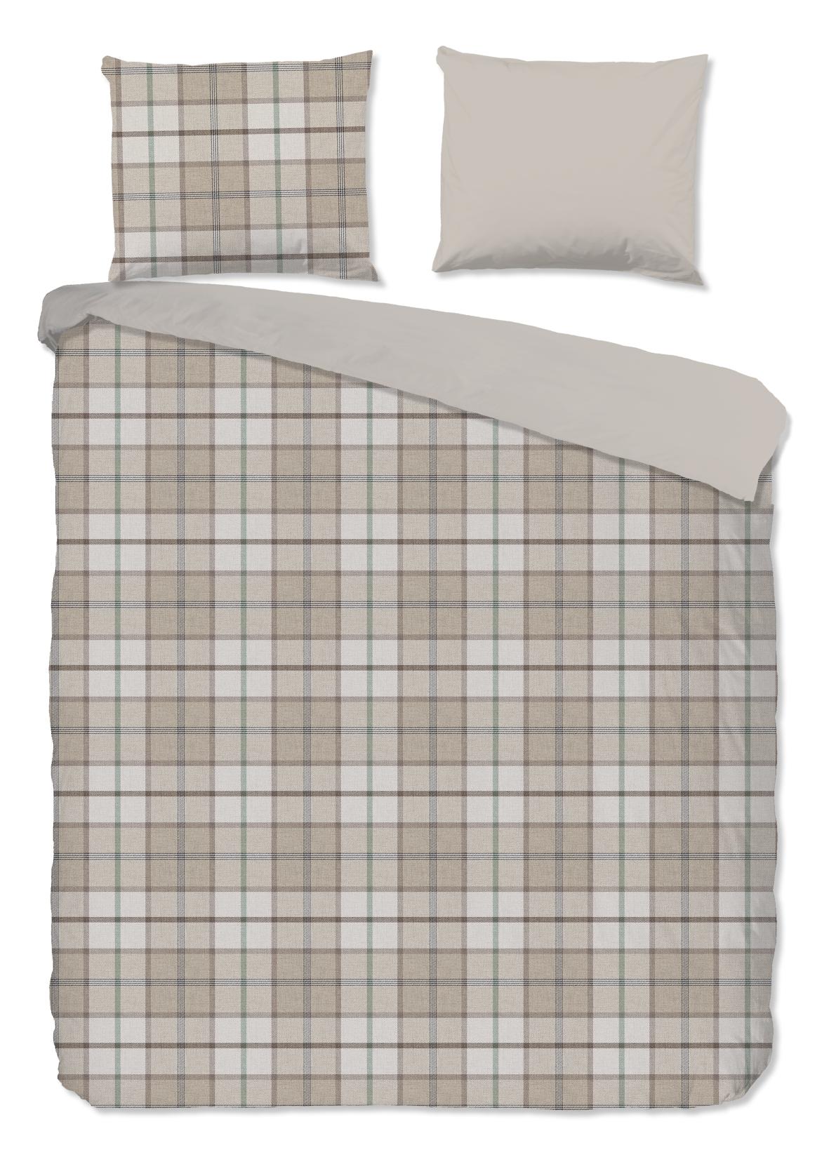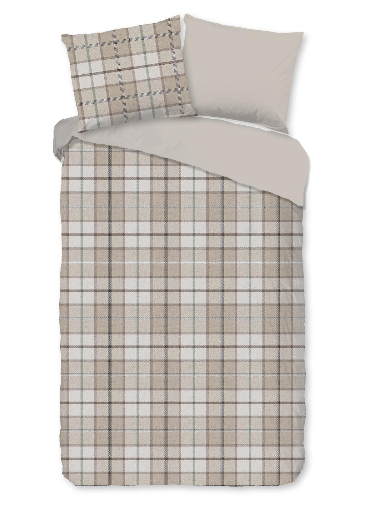 Flanellen dekbedovertrek Bernardus van Good Morning, in de kleur zand, met een print van eengeruite print. Het dekbedovertrek is gemaakt van 100% katoen/flanel dat is licht geruwd, waardoor een fluweelzacht laagje ontstaat dat heerlijk warm aanvoelt - perfect voor koude nachten.