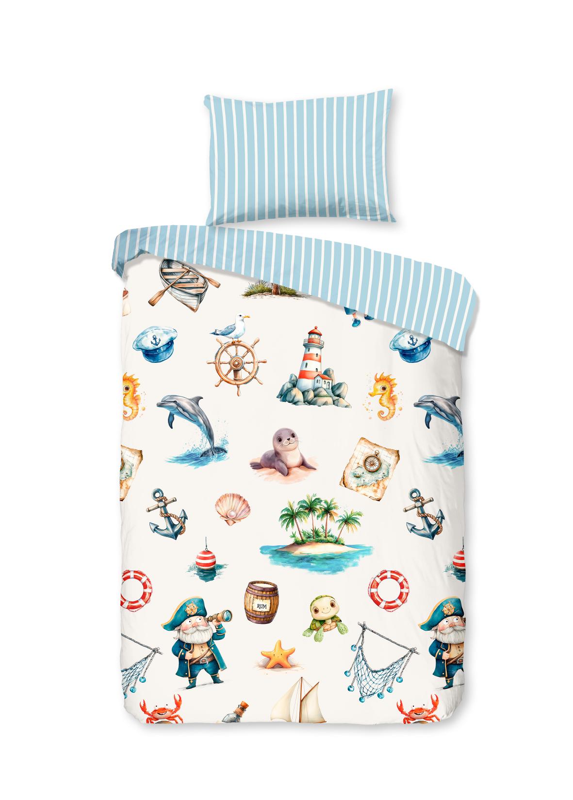 Kinderdekbedovertrek Capi van Good Morning in de kleur blauw, met een print van maritieme / zeedieren. Het dekbedovertrek is gemaakt van 100% katoen. Deze kwaliteit is ademend, vochtabsorberend en voelt zacht en soepel aan. Dit leuke kinderdekbedovertrek is een leuke toevoeging aan iedere kinderkamer. Het kinderdekbedovertrek is geschikt voor ieder jaargetijde. Het katoenen 100% katoen is heerlijk koel in de zomer en geeft warmte in de winter.
