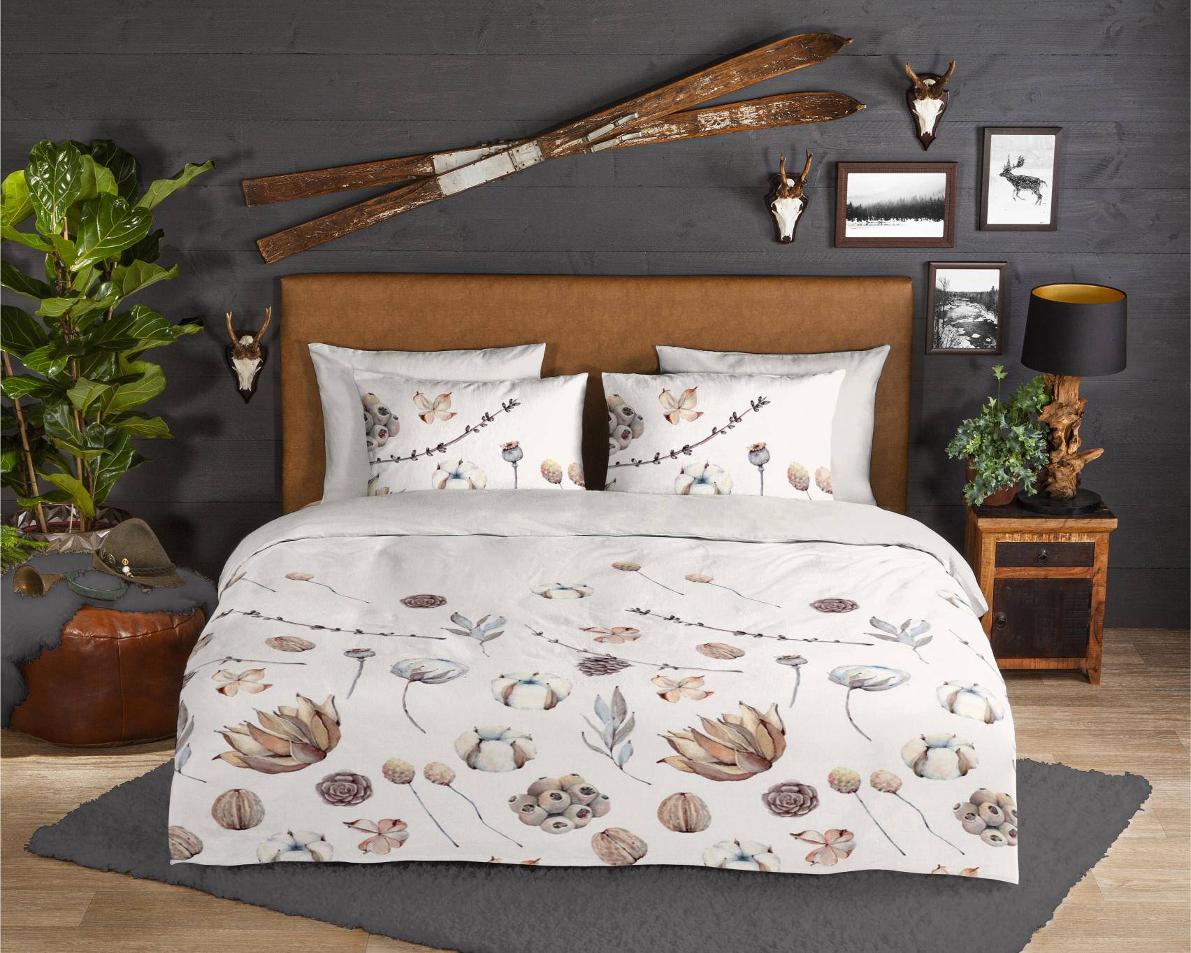 Flanellen dekbedovertrek Mirre van Good Morning, in de kleur zand, met een print van droog bloemen. Het dekbedovertrek is gemaakt van 100% katoen/flanel dat is licht geruwd, waardoor een fluweelzacht laagje ontstaat dat heerlijk warm aanvoelt - perfect voor koude nachten. Dit item is Oeko-Tex gecertificeerd (Oeko-Tex Standard 100): vrij van schadelijke stoffen en huidvriendelijk. Wasbaar op max. 40°C en geschikt voor de wasdroger.