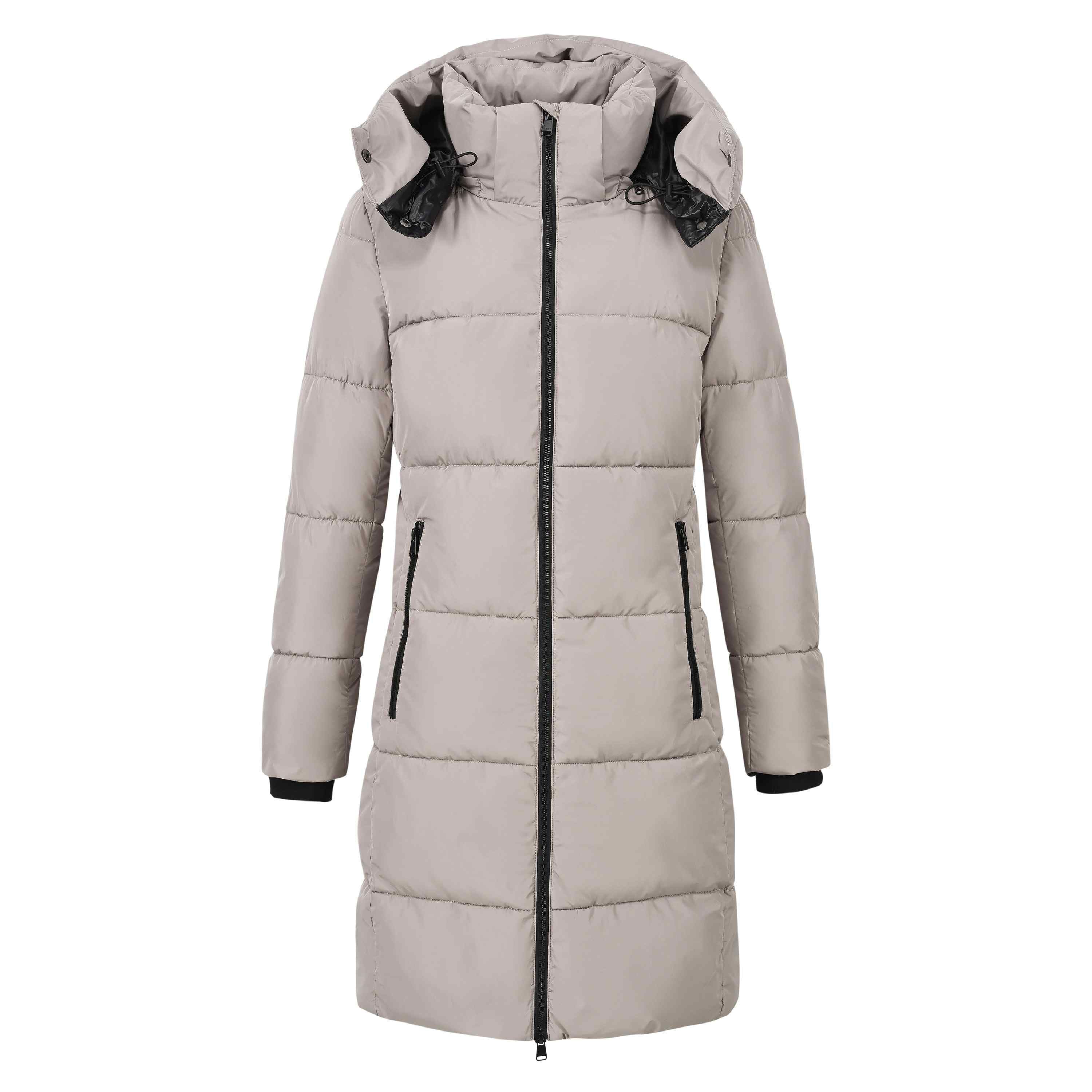 Lange medium gewatteerde jas * Combinatie van doffe en glanzende stof * Nep dons vulling * Capuchon met hoge kraag * Kinbeschermer * Winddicht * 2-weg ritssluiting aan de voorkant * Ritsen met HV Polo-logo * Contrasterende voering * Nep dons label glanzend gedrukt op binnenzak * Fijne rib binnenmanchetten * Kinbeschermer * Voorzakken met lange ritsen * Zachte microfleece voor zakken * Binnenzak met ritssluiting * HV Polo badge op de bovenmouw aan de linkerzijde van de drager * Functielabel metallic gedrukt op binnenzak * Glanzende zwarte accessoires