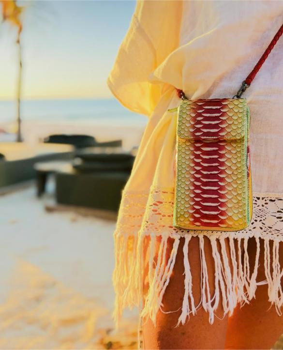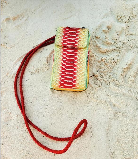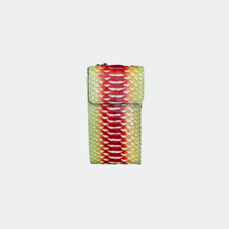 Python tas, met dubbel compartiment: portefeuille compartiment entelefoon compartiment. Metalen afwerkingen in zwarte kleur. Afneembare schouderriem vanleer.Afmetingen van de tas: 17,5 x 10 cm