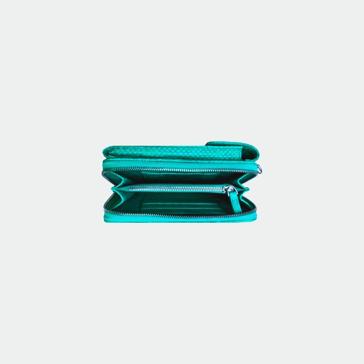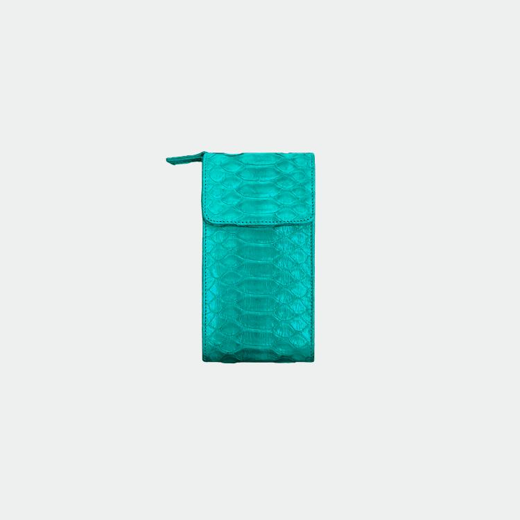 Python tas, met dubbel compartiment: portefeuille compartiment entelefoon compartiment. Metalen afwerkingen in zwarte kleur. Afneembare schouderriem vanleer.Afmetingen van de tas: 17,5 x 10 cm