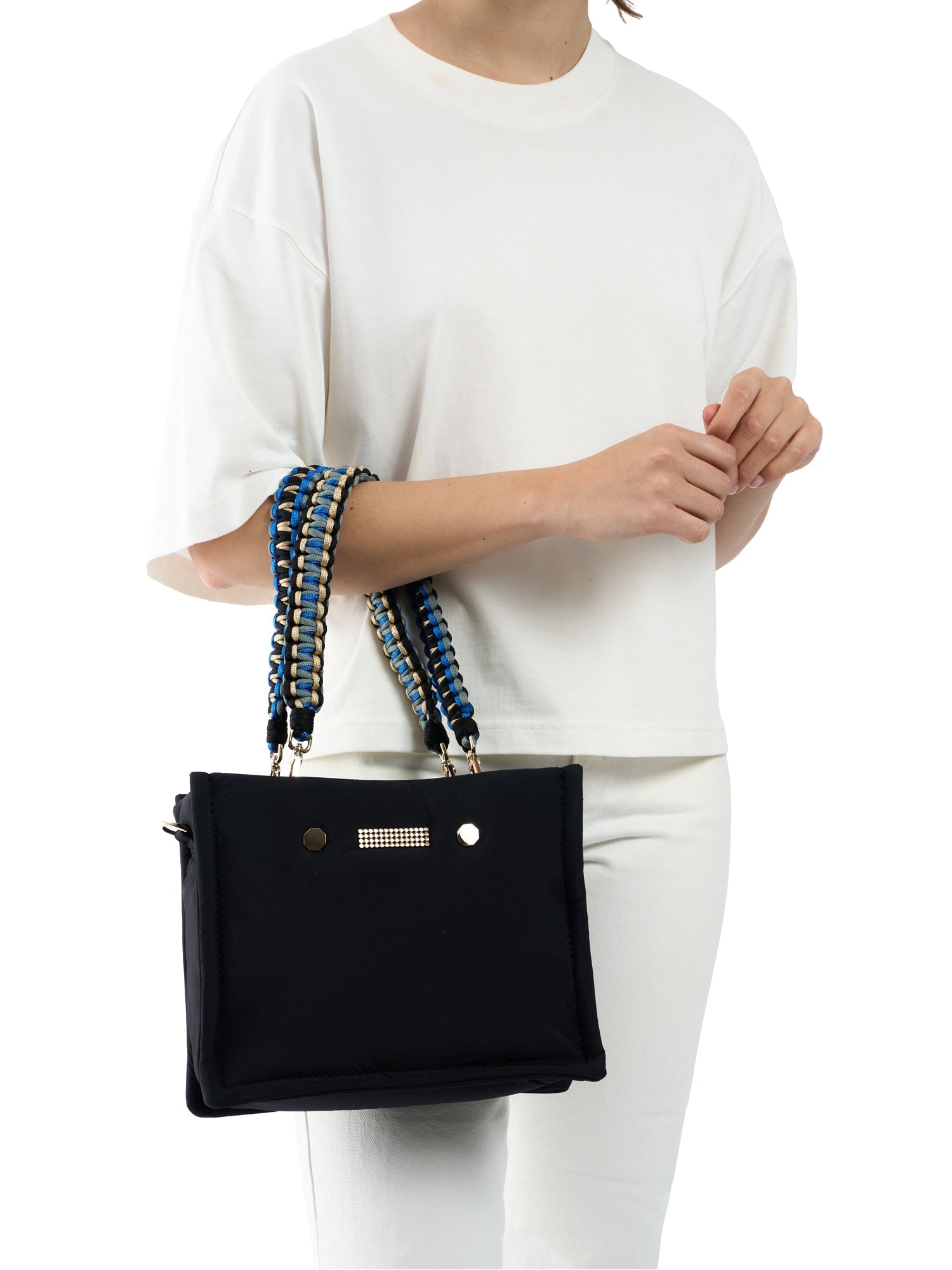 Verrassend ruimtelijk voor zijn grootte, de MINI FLEX past het essentiële zonder rommel. Draag het op jouw manier: crossbody, over de schouder, of gedragen aan de gekleurde gevlochten handgrepen voor een speelse draai.