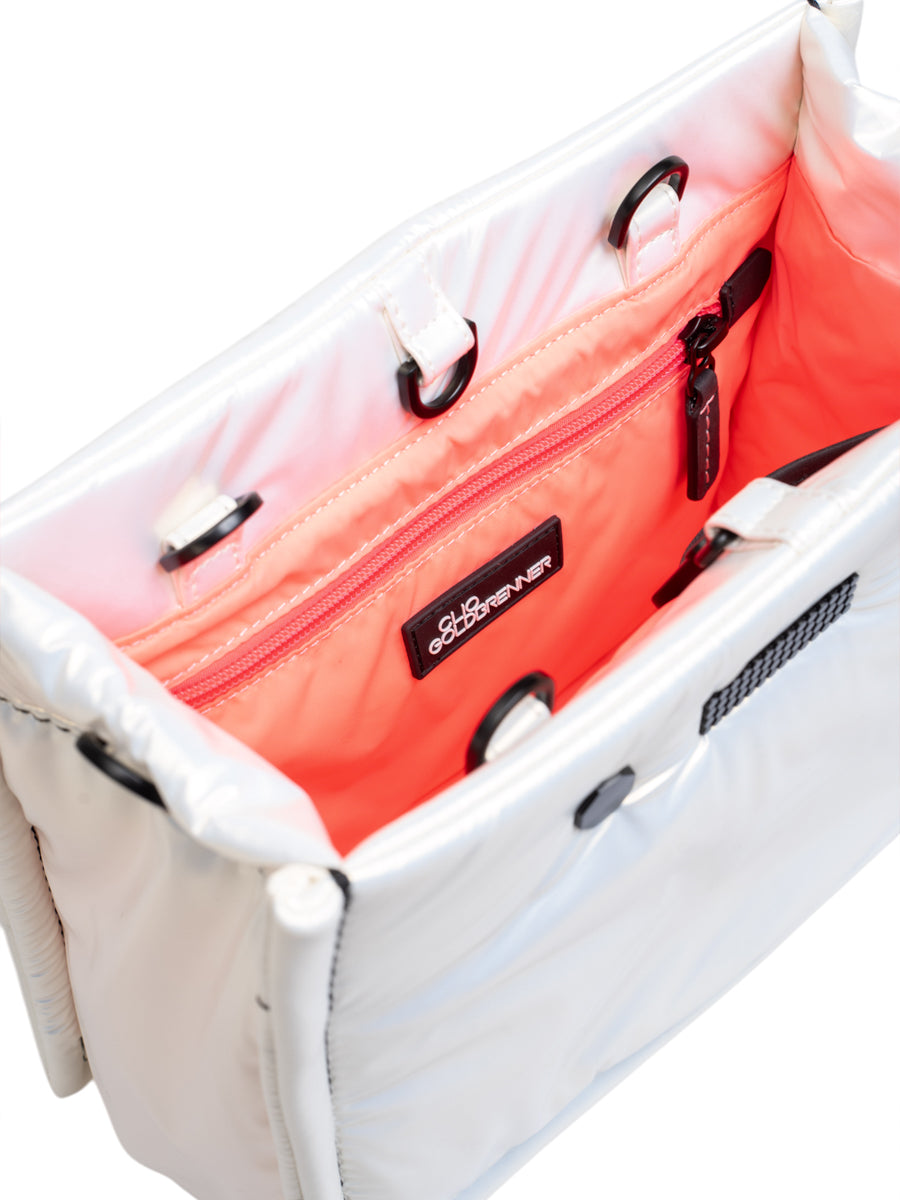 Gemaakt van licht gerecycled nylon, compact, gestructureerd en gemakkelijk te dragen. Het gaat moeiteloos door je dag. Werkochten, snelle boodschappen, stadsuitstapjes, late diners.