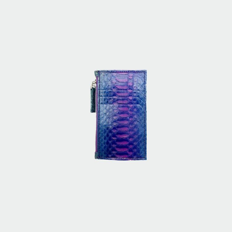 Kaartenhouder in python. Vijf vakken voor kaartenmet ritsvak.Metalen ritssluiting.Afmetingen: 8 x 14 cm